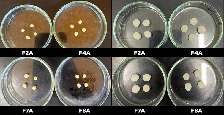 Além disso, investigamos os chamados micomateriais, produzidos a partir de fungos. Pode soar inusitado pensar em fungos como alternativa tecnológica, mas muitas espécies apresentam propriedades impressionantes, entre elas a capacidade de agregar partículas e reter água, o que abre espaço para aplicações promissoras na agricultura em ambientes de clima seco.