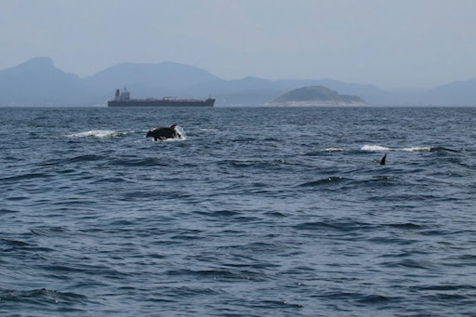 O risco de colisão com navios é constante. Baleias e golfinhos precisam vir à superfície para respirar e, em áreas de tráfego intenso como o sudeste, o risco de serem atingidos por embarcações é alto. Já o ruído constante – tanto dos motores de navios quanto da exploração de petróleo e gás – interfere na orientação, comunicação e caça de baleias e golfinhos.