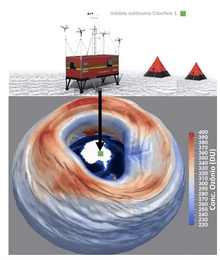 Em função dessa sua posição geográfica estratégica, o monitoramento da camada de ozônio na estratosfera da Antártica pelo Criosfera traz dados significativos.