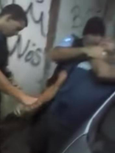 Logo no início, um policial identificado como Renan ordena: “vambora, vamo pra delegacia”. João, um dos jovens, responde: “não vai não”. Enquanto dá a ordem, Renan avança, tentando conter João, que dá passos para trás, evitando ser contido.
