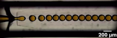 Outro avanço em curso no laboratório na área de microfluídica é a produção de microcápsulas com tamanho controlado, capazes de liberar substâncias químicas de forma direcionada. Elas carregam, por exemplo, inibidores de corrosão envolvidos por membranas sensíveis à temperatura, ao pH ou a outros gatilhos específicos, que permitem a liberação no local e momento desejados.