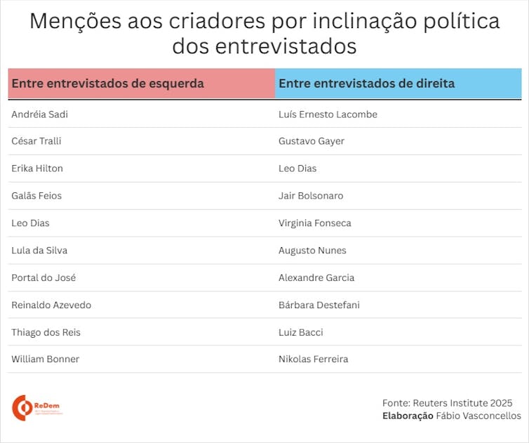 Essa divisão entre criadores digitais preferidos pela esquerda e aqueles preferidos pelos cidadãos que se identificam como o campo da direita tem implicações: enquanto a esquerda pode ser parcialmente alcançada por canais institucionais, a direita exige engajamento direto com influenciadores. A assimetria força uma abordagem segmentada e deliberada por parte de comunicadores, jornalistas e estrategistas.