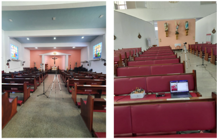 O equipamento foi testado em um ambiente comunitário, na Igreja dos Santos Anjos, no bairro do Leblon, fora do horário de missas. O espaço tem um pé-direito alto e capacidade para mais de 400 pessoas, o que o torna um bom ambiente de teste para medições acústicas controladas.